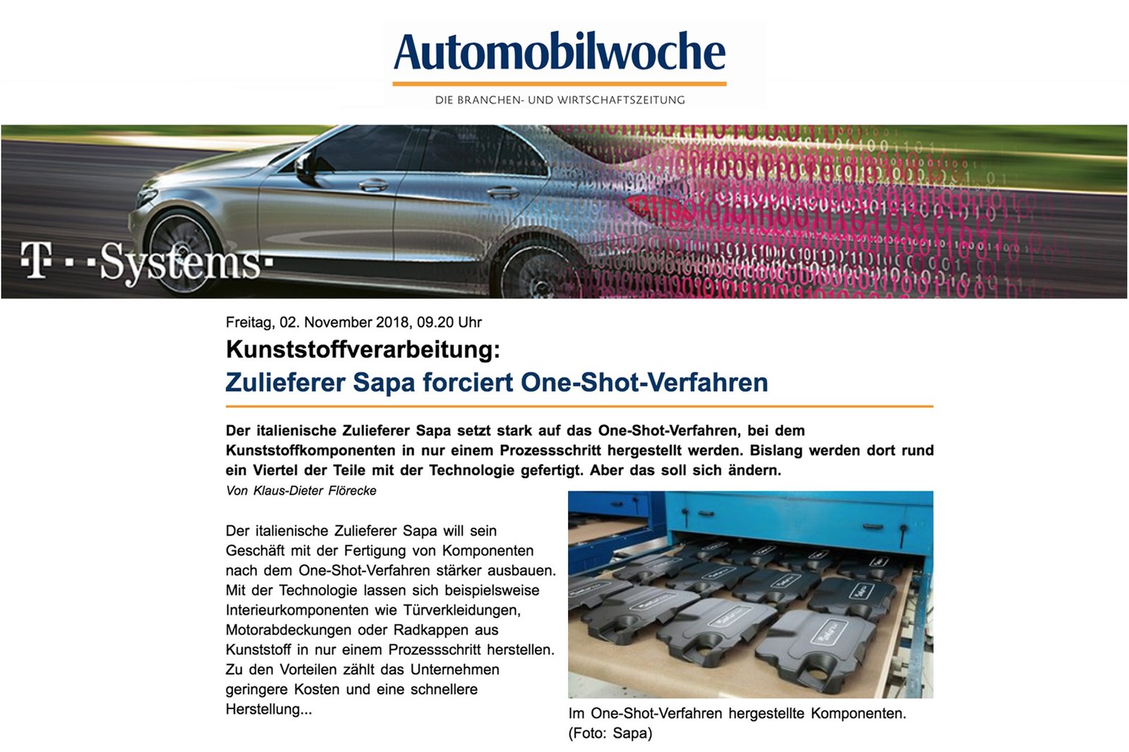 NACH DEN WOLFSBURGER NACHRICHTEN WIDMET NUN AUCH DIE AUTOMOBILWOCHE EINE GANZE SEITE DEM UNTERNEHMEN SAPA UND IHREM ONE-SHOT®-PROZESS, DEM EINZIGEN, […]