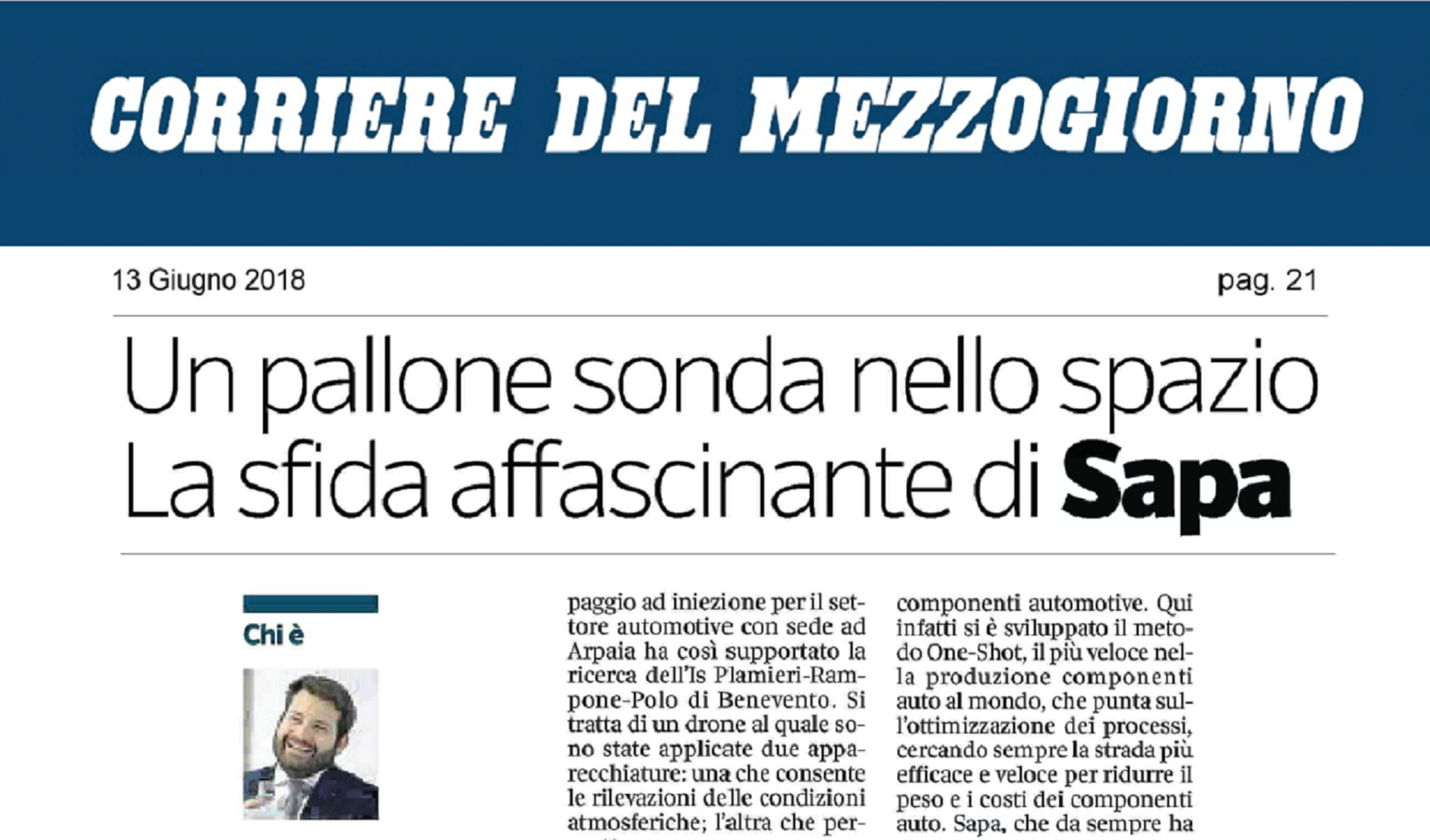 In seiner Mezzogiorno-Ausgabe hat der Corriere della Sera der Initiative von SAPA als Sponsor des Abachos-Projekts, das für Automatic Back […]